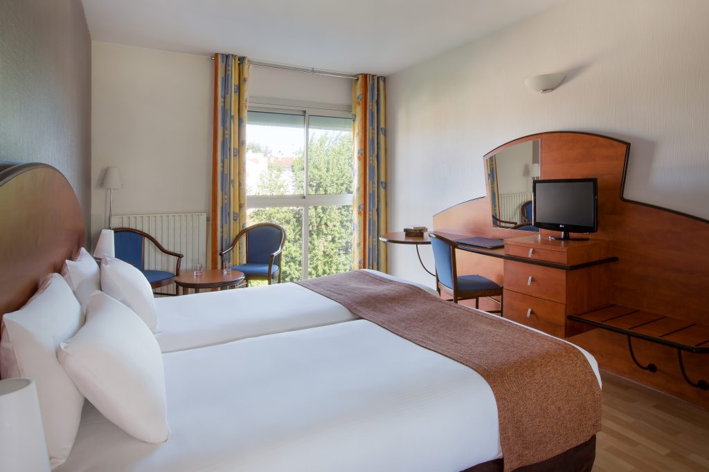 A deux pas du centre historique, des commerces et des rues piétonnes, avec un accès direct aux thermes par ascenseur, le Grand Hôtel*** vous propose propose 112 chambres dont 4 PMR ( Personne à Mobilité Réduite) , 1 chambre salon et 15 appartements dont 1 PMR qui offrent un aménagement intérieur alliant décoration relaxante et confort : climatisation, TV écran plat avec Canal+, coffre-fort individuel, grande penderie, salle de bains avec baignoire ou douche et sèche-cheveux…